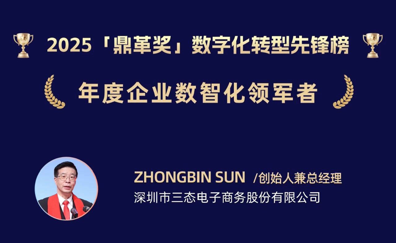 近日,备受业界瞩目的“2025・「鼎革奖」数智化先锋榜”在北京揭晓。深圳市三态电子商务股份有限公司(股票代码:301558)凭借其以AI驱动的全链路数字化实践,荣膺 “年度卓越企业”。公司创始人兼总经理 Zhongbin Sun (孙仲斌)先生,因卓越的数智化战略领导力,同步斩获 “年度企业数智化领军者” 个人奖。
