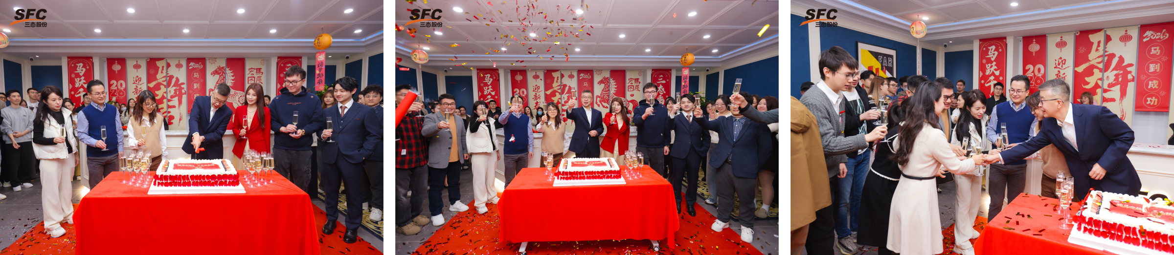 彩带飘落,掌声如潮。John与嘉宾们共同切开象征甜蜜与成功的蛋糕,并举起香槟,共庆这一喜悦时刻。象征着三态股份正式启航新程。